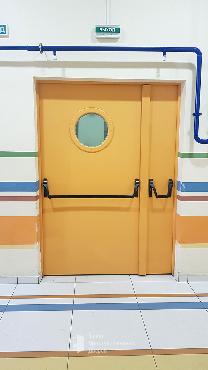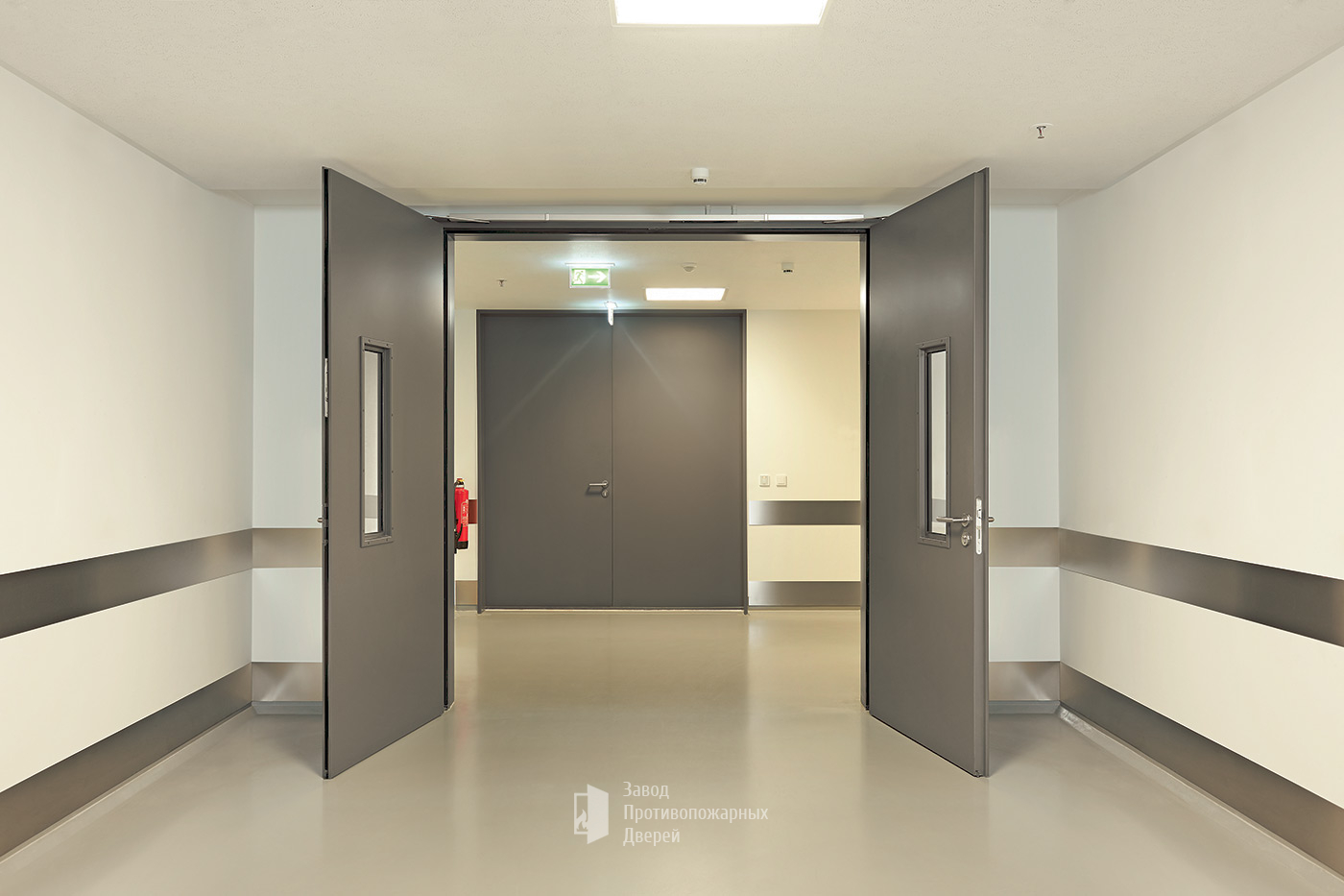 В таких локациях обычно используют двухстворчатые двери. Они обладают повышенной устойчивостью к воздействию температуры, комплектуются специализированными уплотнителями, исключающими проникновение дыма и газа.